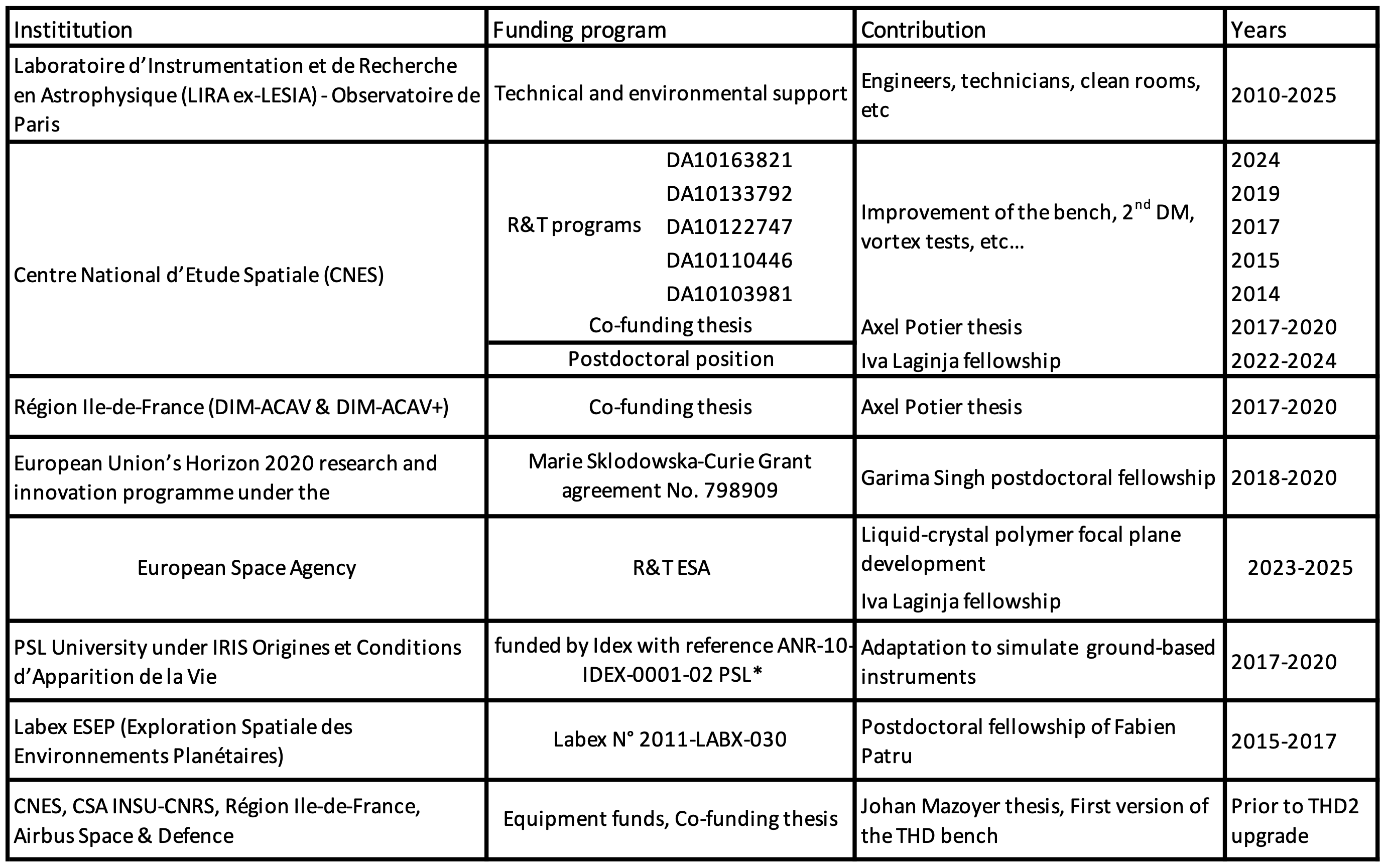 The development of THD2 has been mainly supported by the institutions listed in the table below.